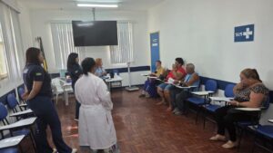 Nesta primeira reunião, ministrada pela enfermeira da Equipe Ponte, Cristiane e com o apoio de sempre das ACS (Agentes Comunitários de Saúde) e também com a presença do Consultório verde, não foi abordado nenhum tema em específico, foi, sim, feito todo um apanhado de temas recorrentes, sempre enfatizando o uso correto dos medicamentos, cuidados com a alimentação. Também houve marcação de consultas e avaliação de pressão e dos pés.