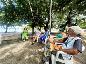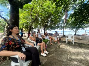 Na manhã desta quarta-feira, dia 04 de fevereiro, tivemos um encontro para falar sobre menopausa, feito pela Equipe Campo. A reunião foi feita na Praia da Moreninha, com o objetivo de possibilitar uma aproximação maior dos profissionais da Saúde da Família, dos nossos usuários, indo diretamente ao território.