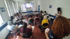 Com a presença do Assistente Social Charles, da Psicóloga Julia e da Educadora Física da Academia Carioca, Simone, após a exibição as participantes puderam debater sobre os relatos vistos e os tipos de violência, pois não existe apenas a violência física, agressões verbais e psicológicas também existem e são extremamente preocupantes, por isso é importante conhecer exemplos, para que se posso identificar esses sinais de maneira precoce.